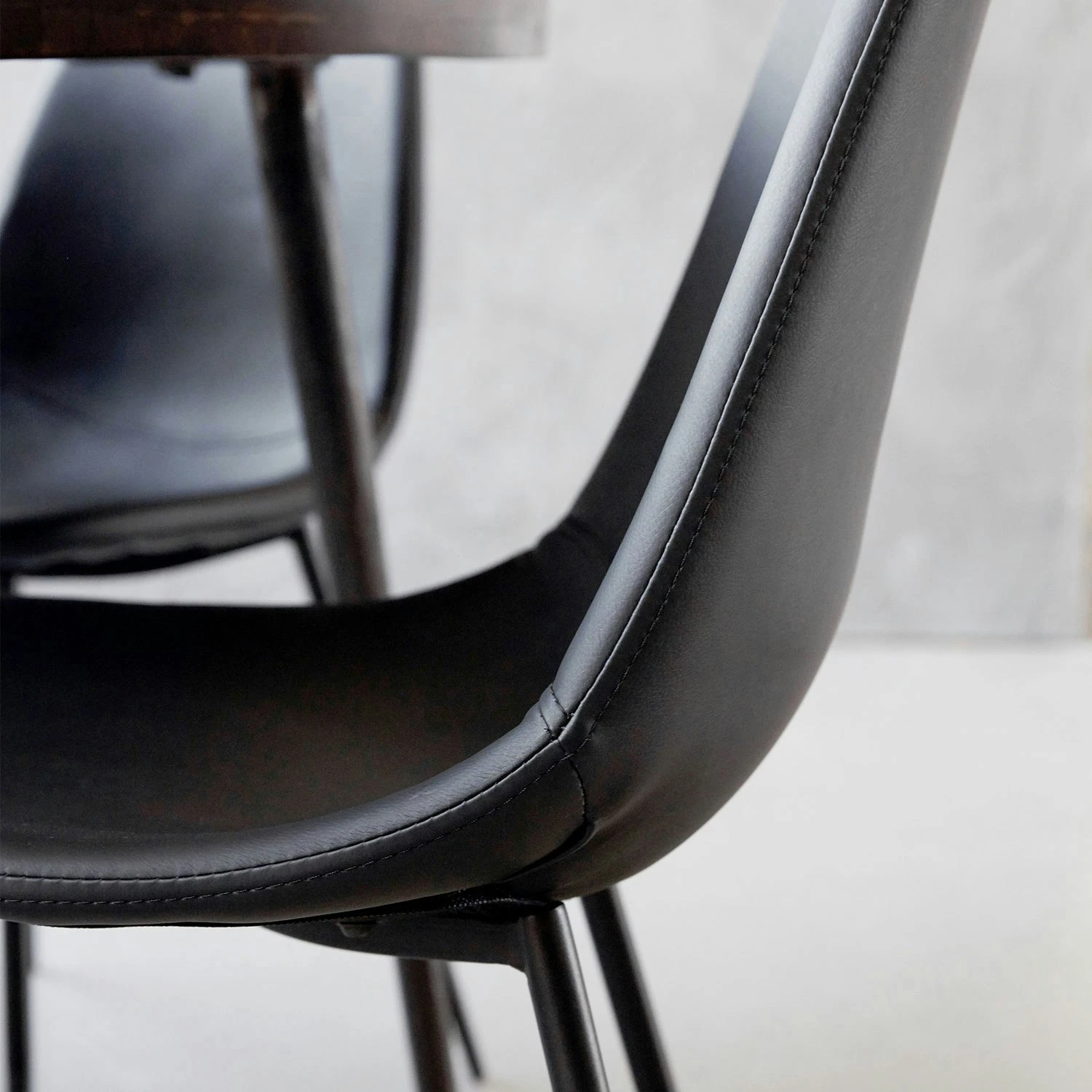 Forms hat einen Rahmen aus Stahl mit einem von PU-Leder bezogenen Sitz, der stilvoll und elegant ist. Er lässt sich leicht reinigen. Der Rahmen gibt dem Stuhl Stabilität und eine lange Haltbarkeit. Durch das schlichte Design und seine robuste Art wirst du viele Jahre Freude an ihm haben.