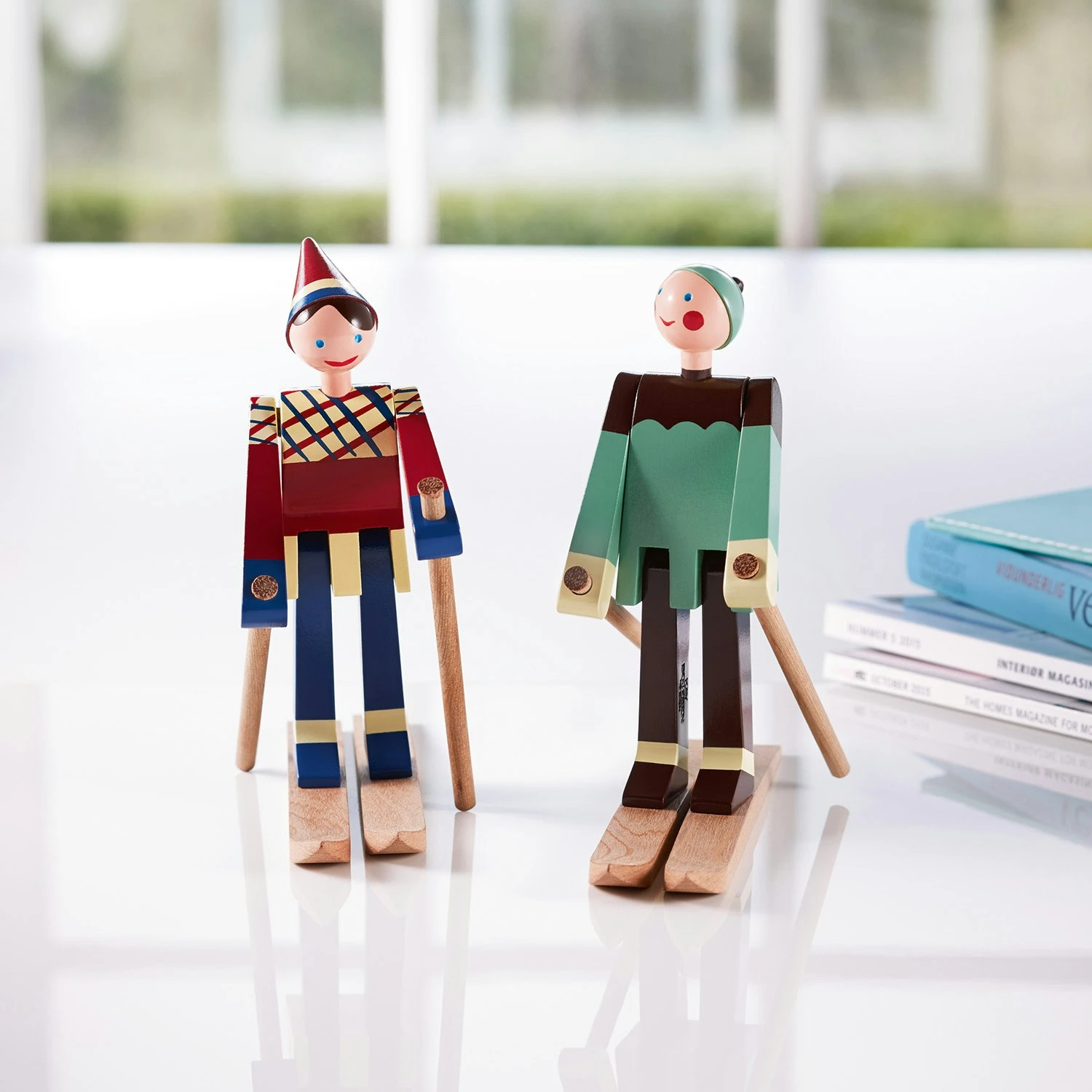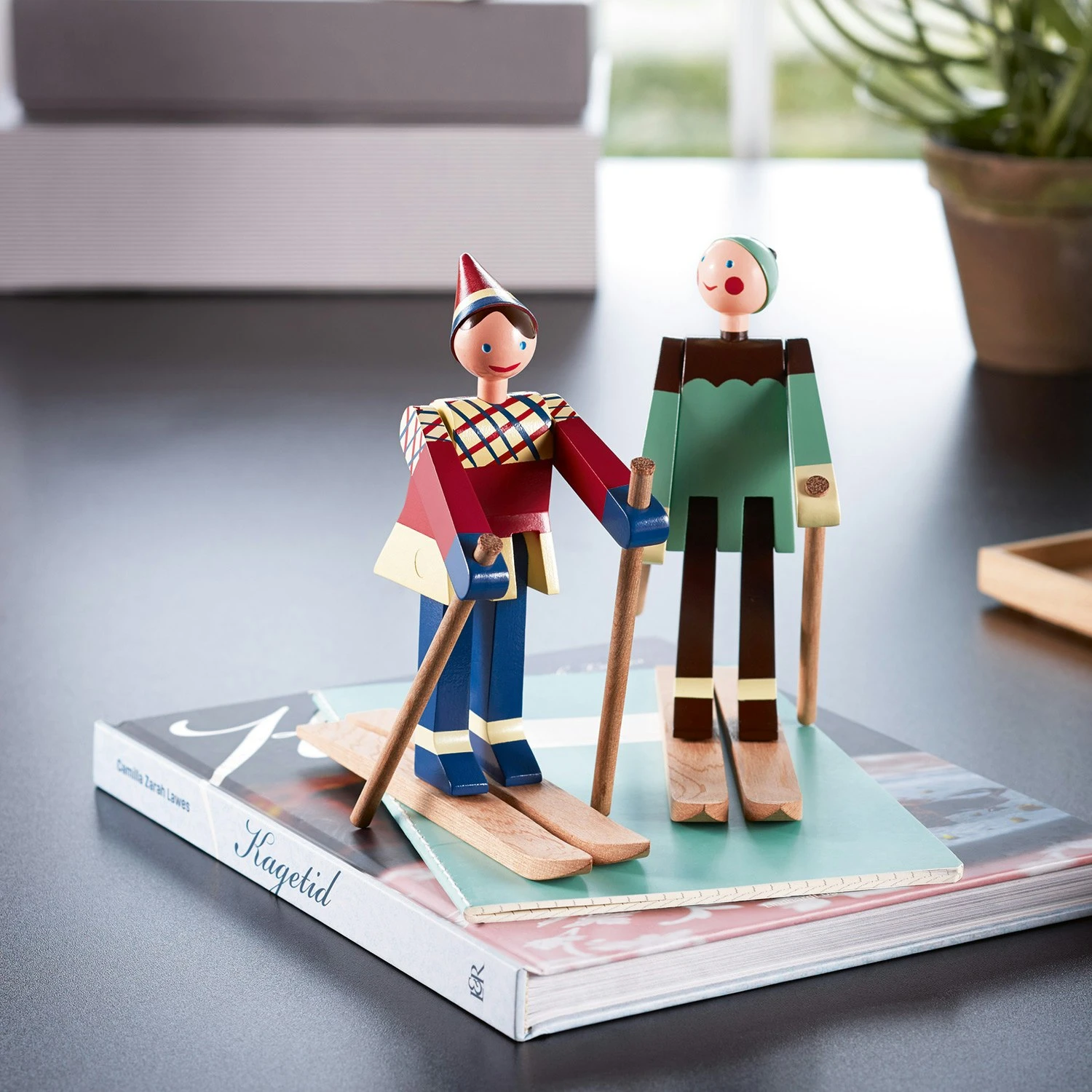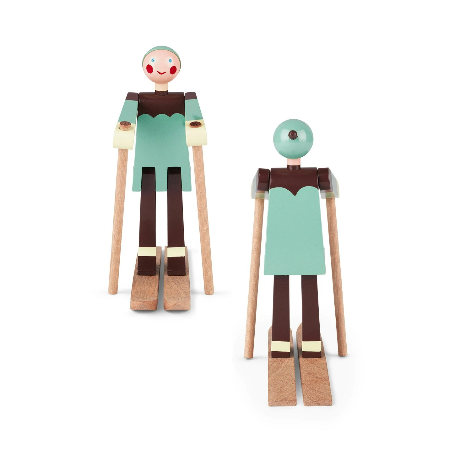 Sagen Sie hallo zu den Skifahrern Boje und Datti. Die beiden schnellen Skifahrer werden von Kay Bojesen gestaltet. Der glückliche Skijunge mit einem roten Hut und einer karierten Jacke Boje benannt, der von Kay Bojesen Sohn Otto Spitznamen. Die weiblichen Skifahrer nach Ottos Frau namens Ruth, die Datti Spitznamen. Die beiden Skifahrer sind aus Holz gefertigt und haben einen einzigartigen Ausdruck. Bitte beachten Sie, dass die Skifahrer separat verkauft werden.